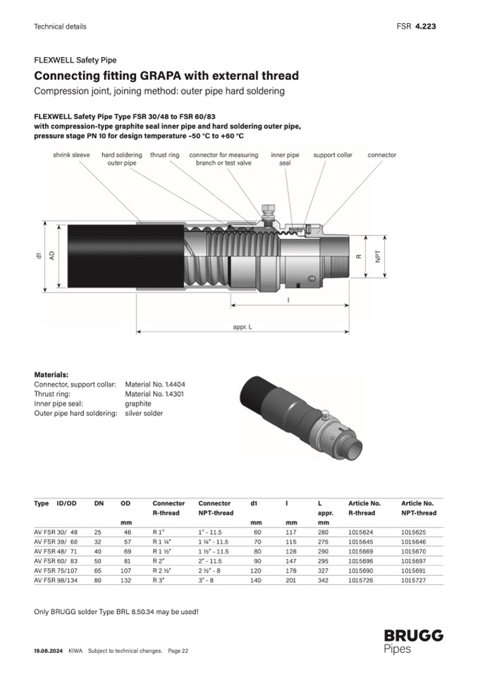 Only BRUGG solder Type BRL 8.50.34 may be used!