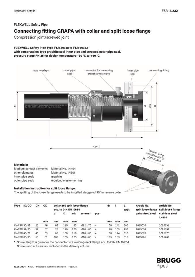 FLEXWELL Safety Pipe Type FSR 30/48 to FSR 60/83