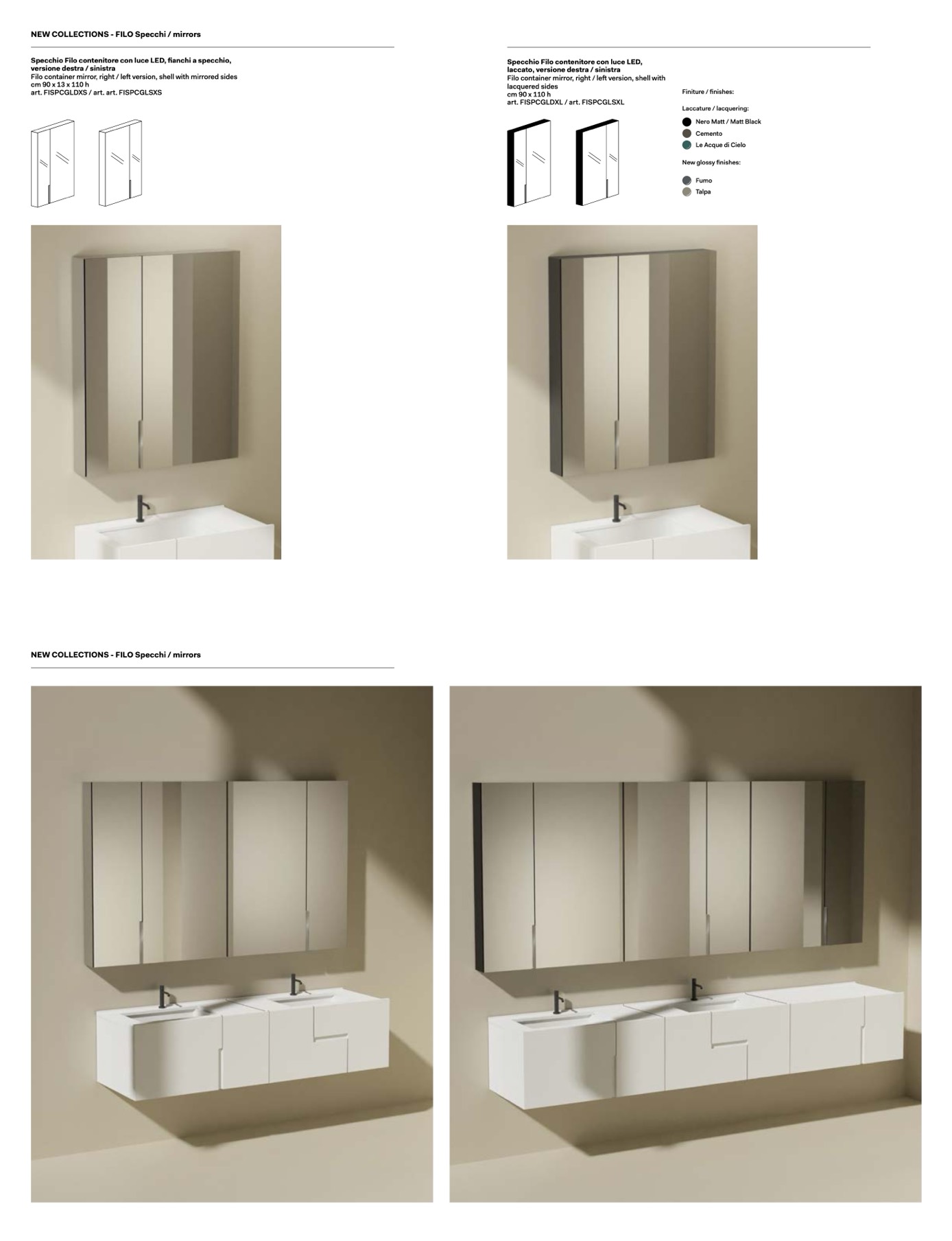Specchio Filo contenitore con luce LED, fianchi a specchio,