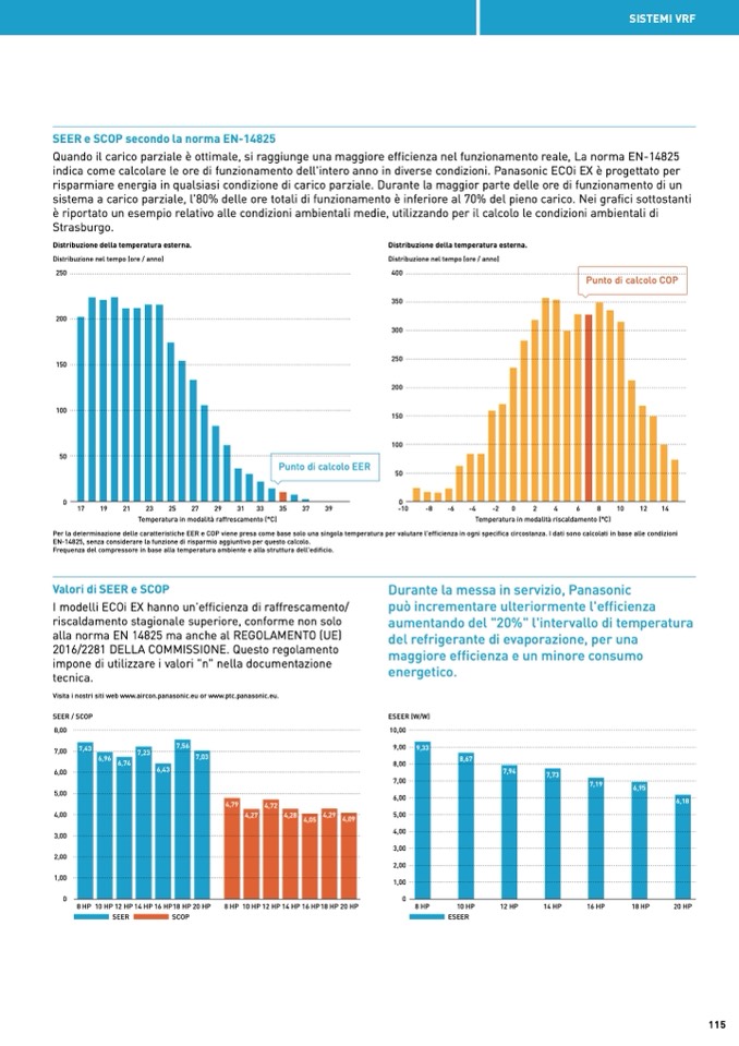 Per la determinazione delle caratteristiche EER e COP viene presa come base solo una singola temperatura per valutare l'efficienza in ogni specifica circostanza. I dati sono calcolati in base alle condizioni