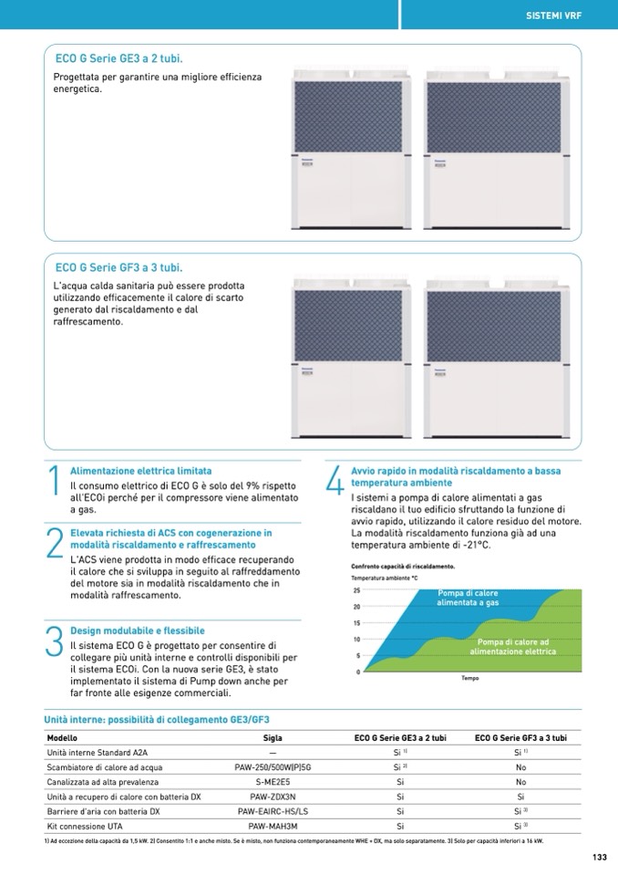 1) Ad eccezione della capacità da 1,5 kW. 2) Consentito 1:1 e anche misto. Se è misto, non funziona contemporaneamente WHE + DX, ma solo separatamente. 3) Solo per capacità inferiori a 16 kW.