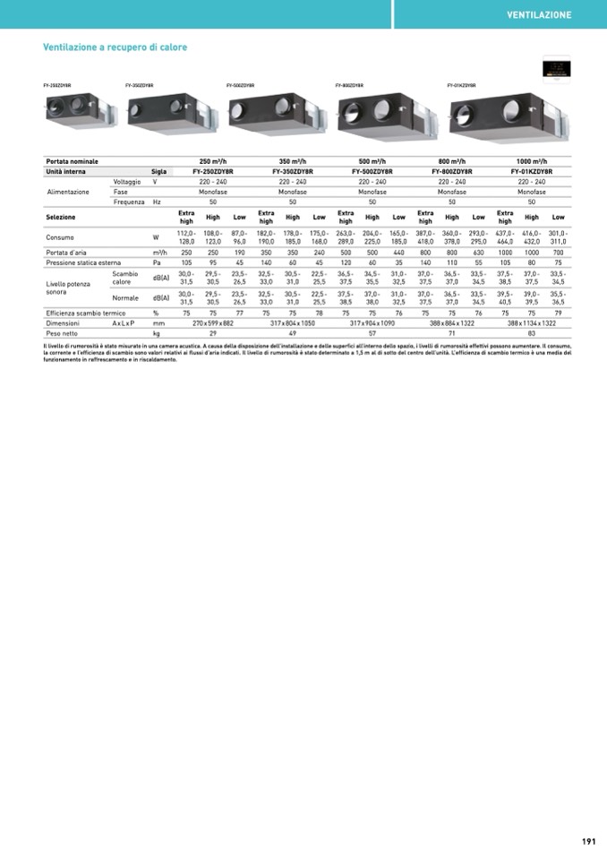 la corrente e l’efficienza di scambio sono valori relativi ai flussi d’aria indicati. Il livello di rumorosità è stato determinato a 1,5 m al di sotto del centro dell’unità. L’efficienza di scambio termico è una media del