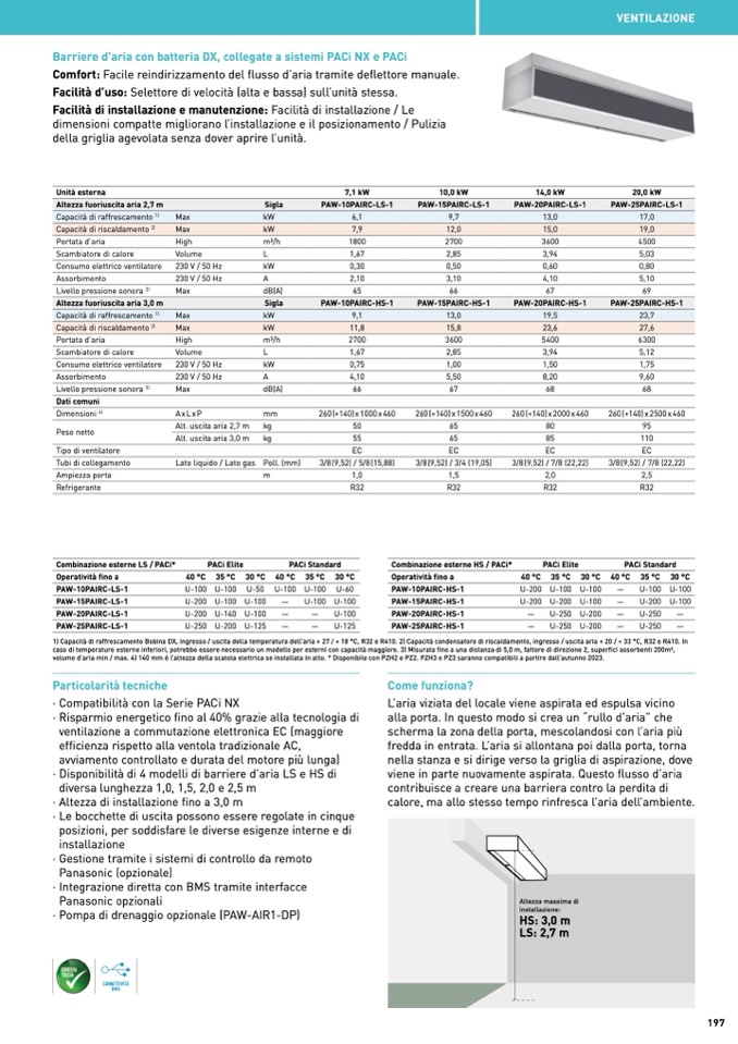 caso di temperature esterne inferiori, potrebbe essere necessario un modello per esterni con capacità maggiore. 3) Misurata fino a una distanza di 5,0 m, fattore di direzione 2, superfici assorbenti 200m2,