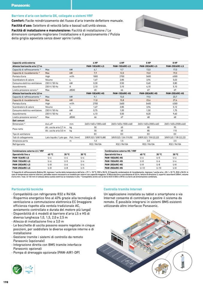 1) Capacità di raffrescamento Bobina DX, ingresso / uscita della temperatura dell’aria + 27 / + 18 °C, R32 e R410. 2) Capacità condensatore di riscaldamento, ingresso / uscita aria + 20 / + 33 °C, R32 e R410. In