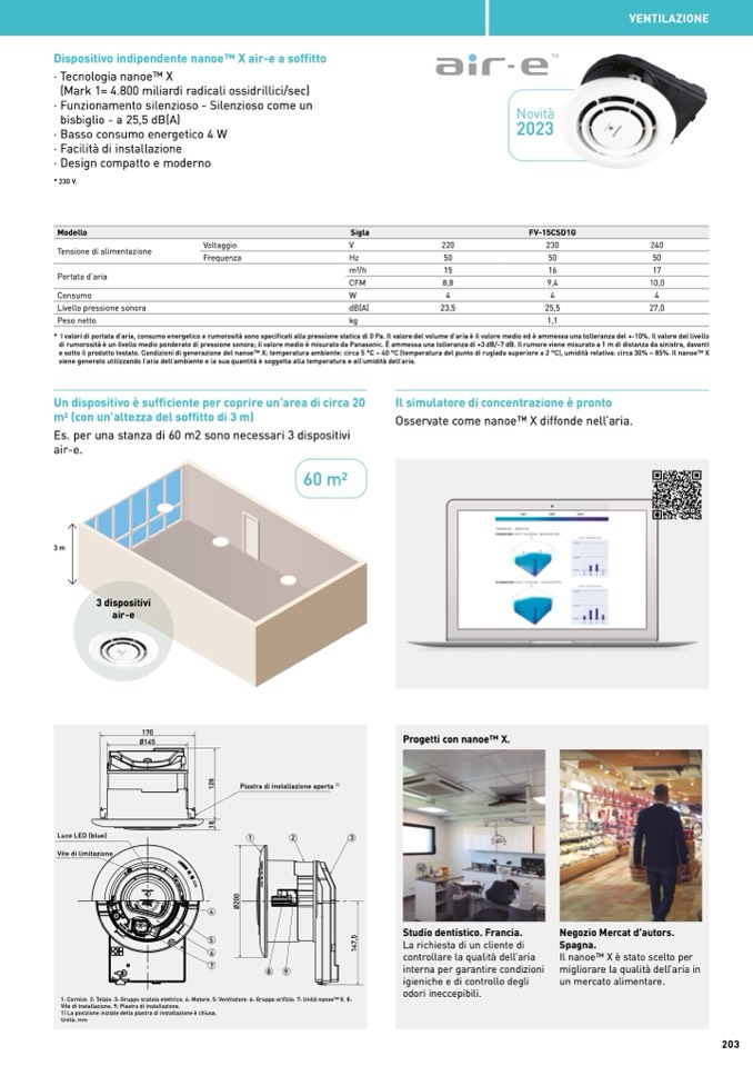 1: Cornice. 2: Telaio. 3: Gruppo scatola elettrica. 4: Motore. 5: Ventilatore. 6: Gruppo orifizio. 7: Unità nanoeTM X. 8: