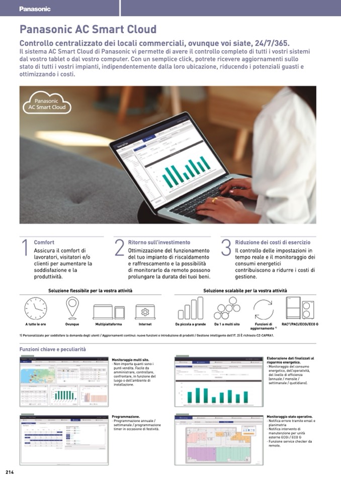 1) Personalizzato per soddisfare la domanda degli utenti / Aggiornamenti continui: nuove funzioni e introduzione di prodotti / Gestione intelligente dell’IT. 2) È richiesto CZ-CAPRA1.