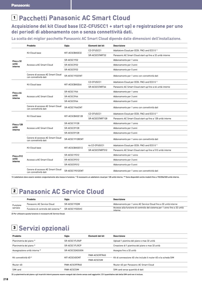 1) L’adattatore deve essere venduto congiuntamente alla messa in funzione. * È necessario un adattatore cloud per 128 unità interne. ** Sono disponibili anche modelli fino a 192/256/320 unità interne.