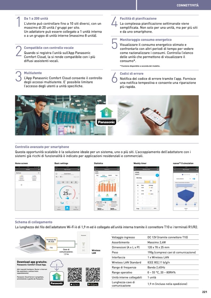 La lunghezza del filo dell’adattatore Wi-Fi è di 1,9 m ed è collegato all’unità interna tramite il connettore T10 e i terminali R1/R2.