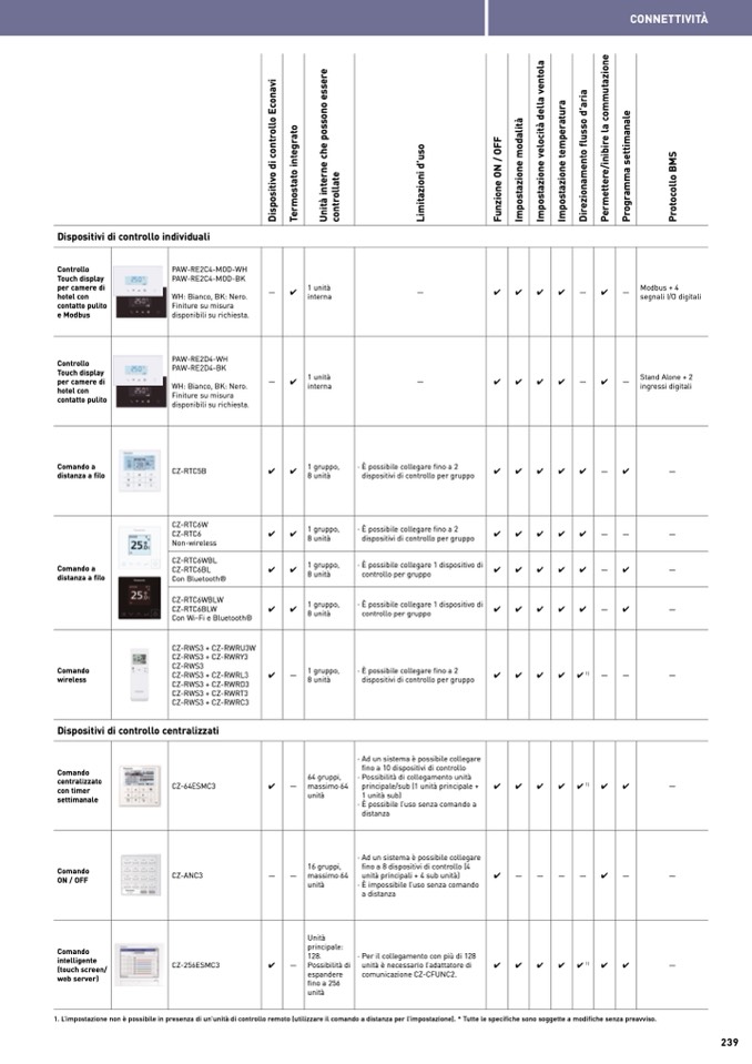 1. L’impostazione non è possibile in presenza di un’unità di controllo remoto (utilizzare il comando a distanza per l’impostazione). * Tutte le specifiche sono soggette a modifiche senza preavviso.