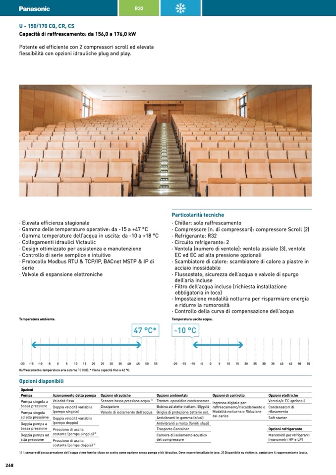 1) Il sensore di bassa pressione dell’acqua viene fornito sfuso se scelto come opzione senza pompa e kit idraulico. Deve essere installato in loco. 2) Disponibile su richiesta, contattare il rappresentante locale.