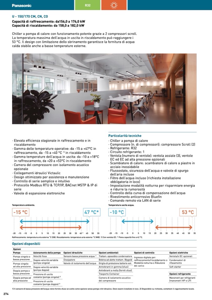 Capacità di raffrescamento: da156,0 a 176,0 kW