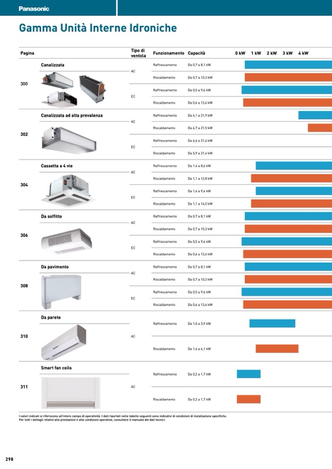 I valori indicati si riferiscono all’intero campo di operatività. I dati riportati nelle tabelle seguenti sono indicativi di condizioni di installazione specifiche.