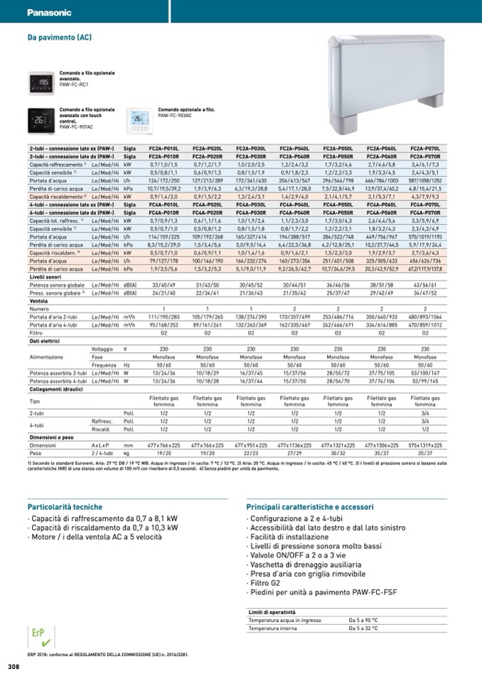1) Secondo lo standard Eurovent. Aria: 27 °C DB / 19 °C WB. Acqua in ingresso / in uscita: 7 °C / 12 °C. 2) Aria: 20 °C. Acqua in ingresso / in uscita: 45 °C / 40 °C. 3) I livelli di pressione sonora si basano sulle