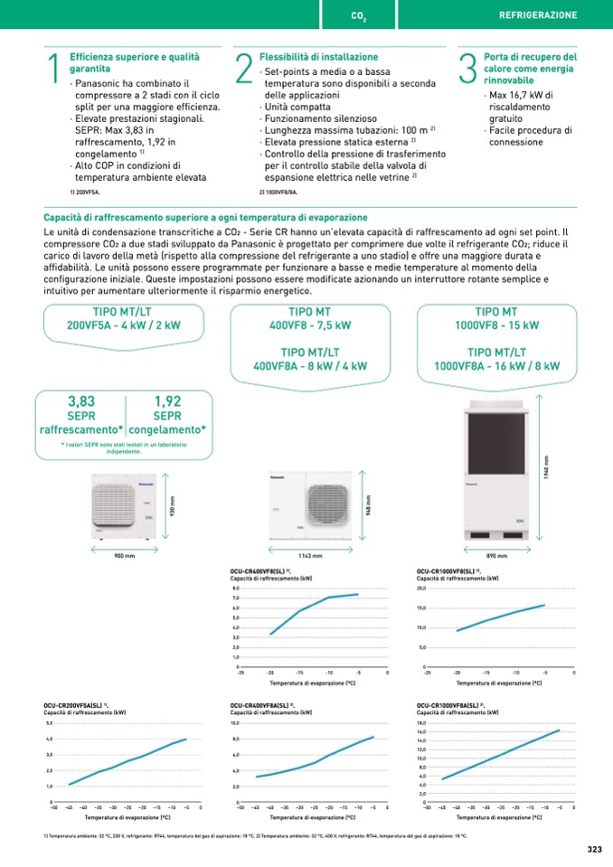 Le unità di condensazione transcritiche a CO2 - Serie CR hanno un’elevata capacità di raffrescamento ad ogni set point. Il
