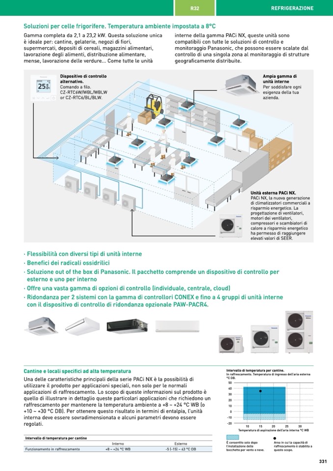 raffrescamento per mantenere la temperatura ambiente a +8 ~ +24 °C WB (o