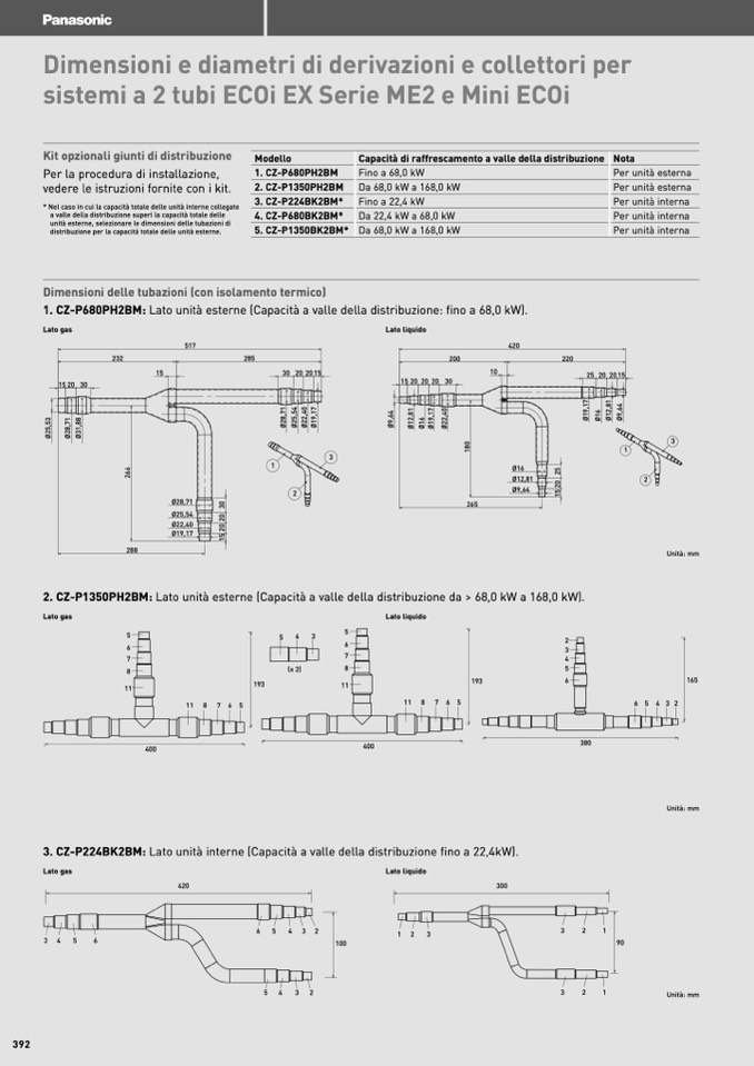 unità esterne, selezionare le dimensioni delle tubazioni di