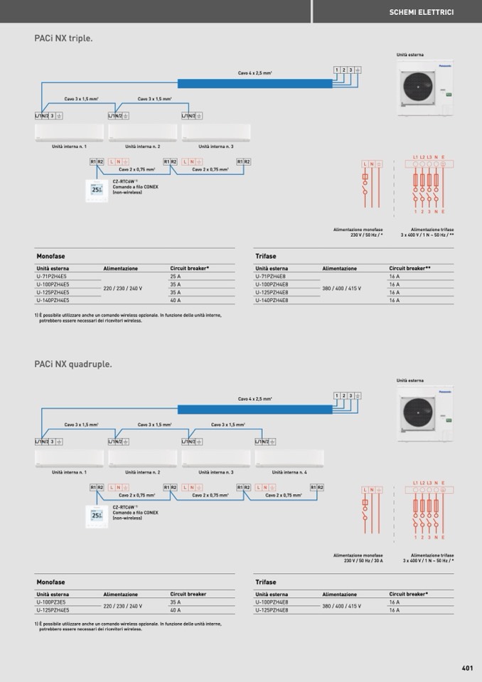 3 x 400 V / 1 N ~ 50 Hz / *