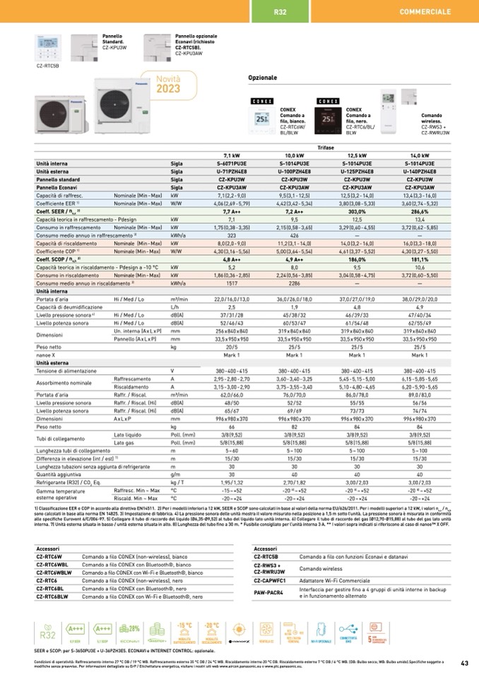 SEER e SCOP: per S-3650PU3E + U-36PZH3E5. ECONAVI e INTERNET CONTROL: opzionale.