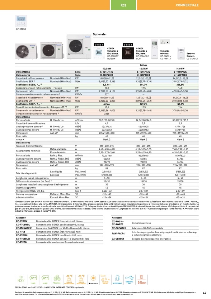 SEER e SCOP: per S-6071PT3E + U-60PZ3E5A. INTERNET CONTROL: opzionale.