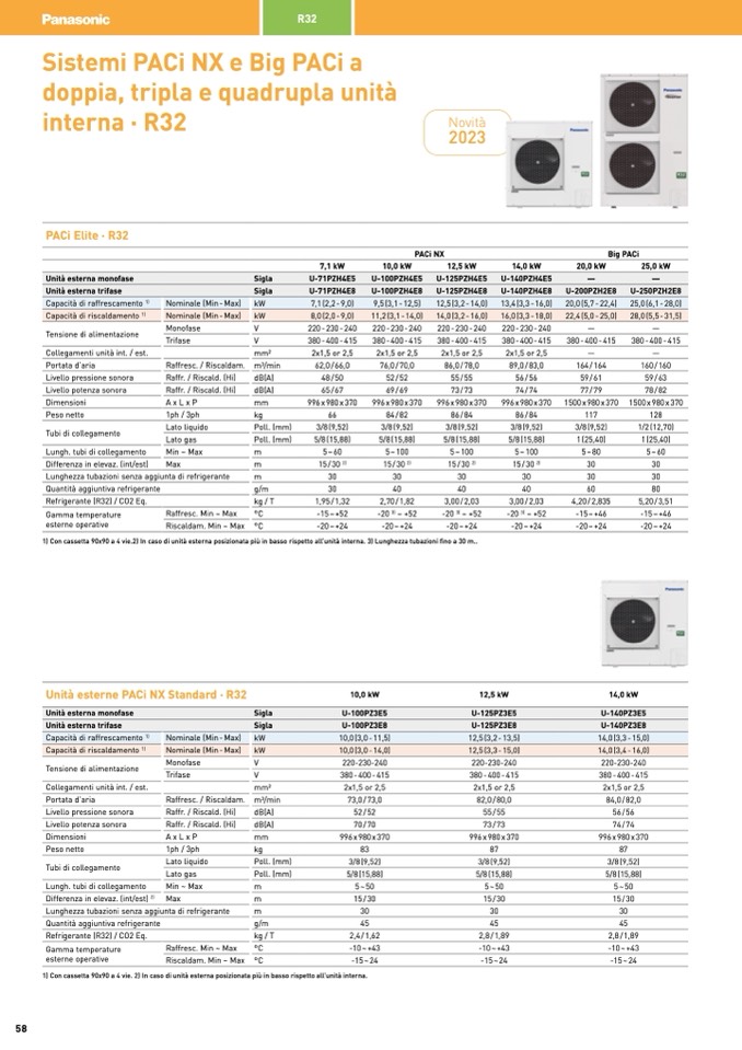 1) Con cassetta 90x90 a 4 vie.2) In caso di unità esterna posizionata più in basso rispetto all’unità interna. 3) Lunghezza tubazioni fino a 30 m..