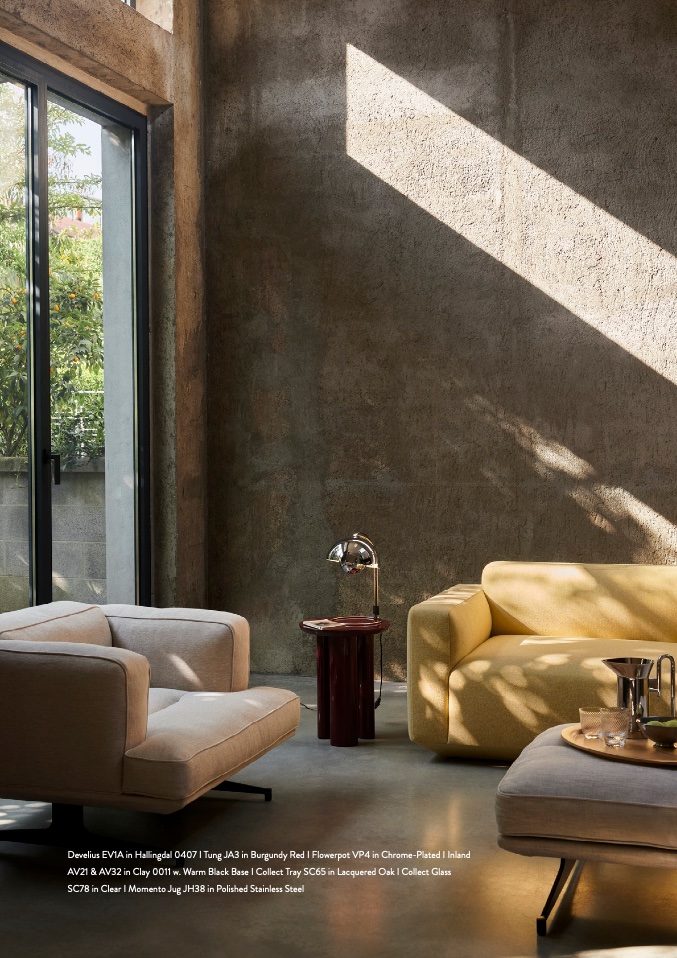 Develius EV1A in Hallingdal 0407 I Tung JA3 in Burgundy Red I Flowerpot VP4 in Chrome-Plated I Inland