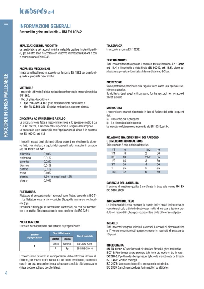 UNI eN 10242-ISO 49: Raccordi di tubazione filettati di ghisa malleabile.