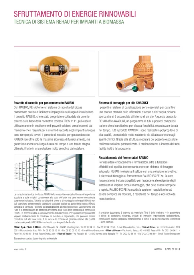 REHAU S.p.A. Filiale di Milano - Via XXV Aprile 54 - 20040 Cambiago MI - Tel 02 95 94 11 - Fax 02 95 94 12 50 - E-mail Milano@rehau.com - Filiale di Roma - Via Leonardo da Vinci 72/A