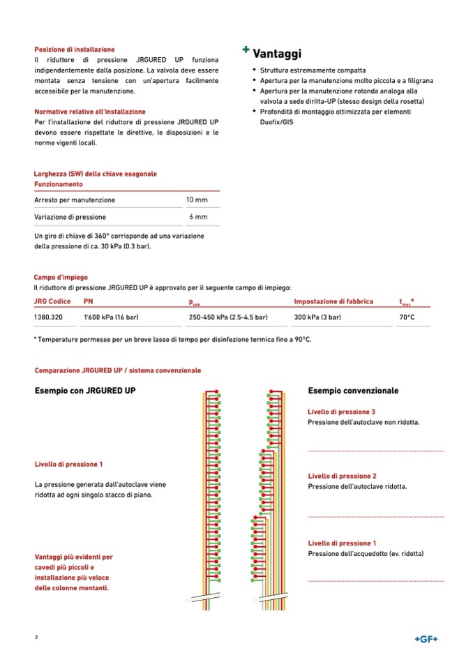 Il riduttore di pressione JRGURED UP è approvato per il seguente campo di impiego:
