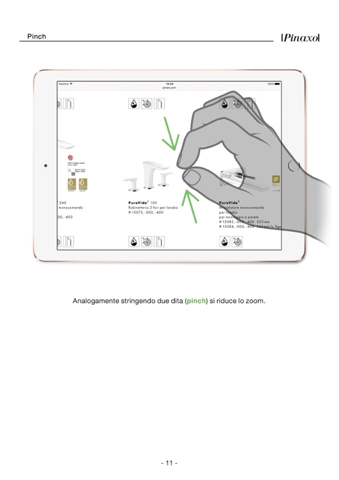 Analogamente stringendo due dita (pinch) si riduce lo zoom.