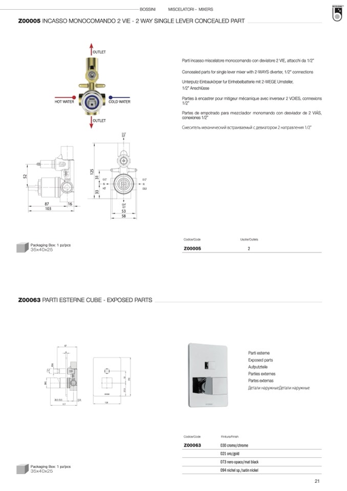 Z00005 INCASSO MONOCOMANDO 2 VIE - 2 WAY SINGLE LEVER CONCEALED PART