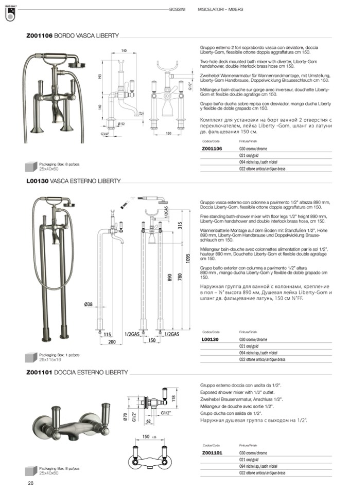 в пол – 1⁄2” высота 890 мм, Душевая лейка Liberty-Gom и