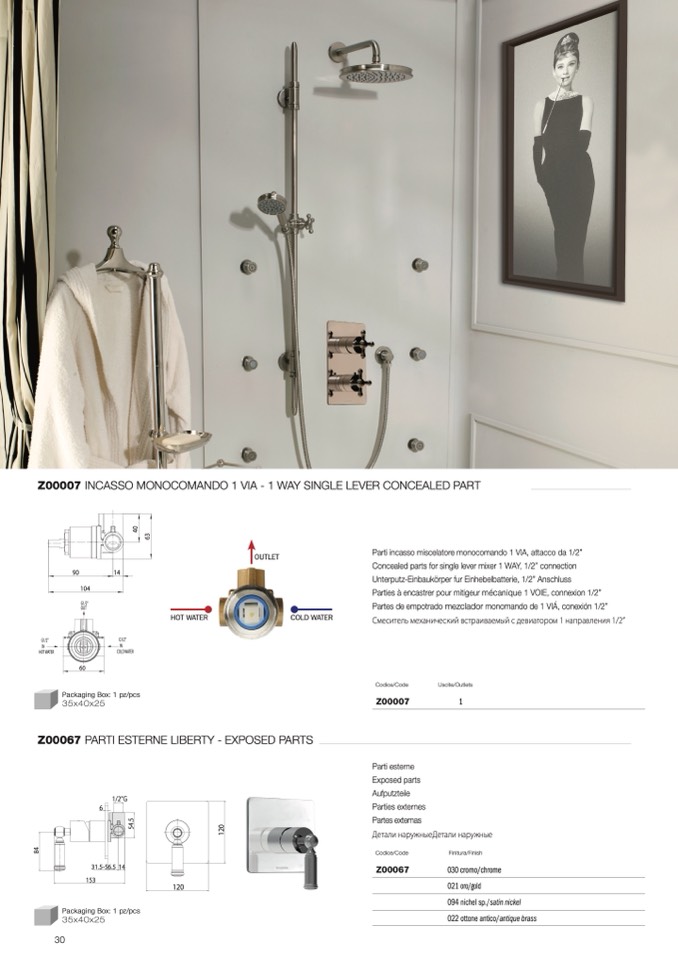 Z00007 INCASSO MONOCOMANDO 1 VIA - 1 WAY SINGLE LEVER CONCEALED PART