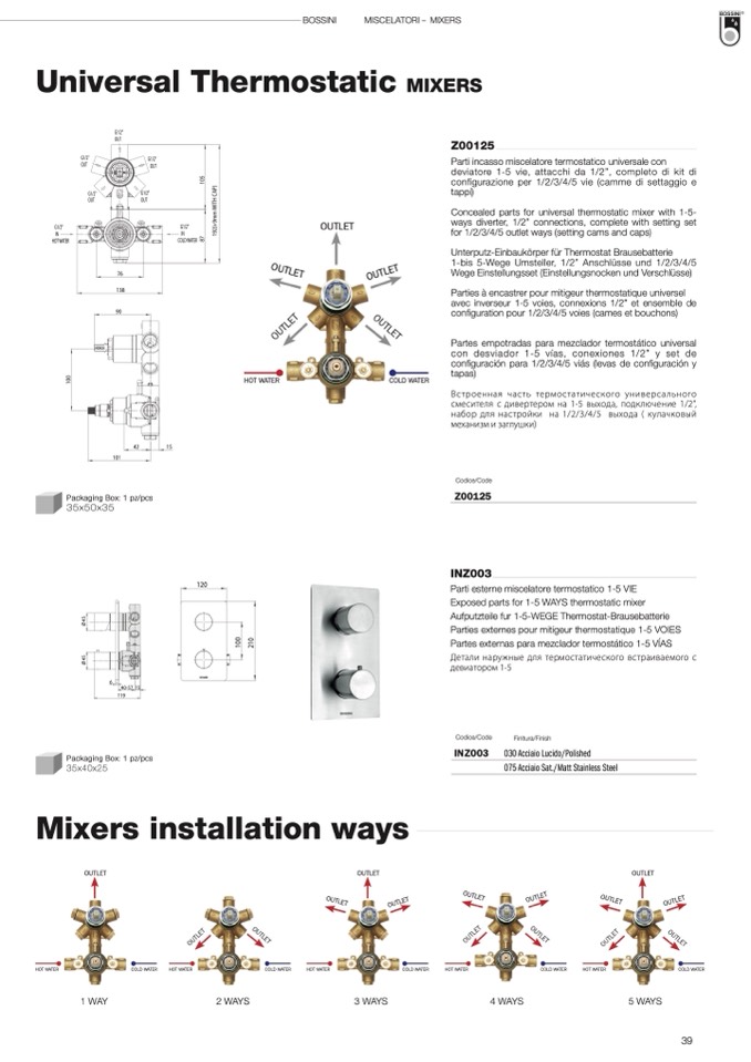 Exposed parts for 1-5 WAYS thermostatic mixer