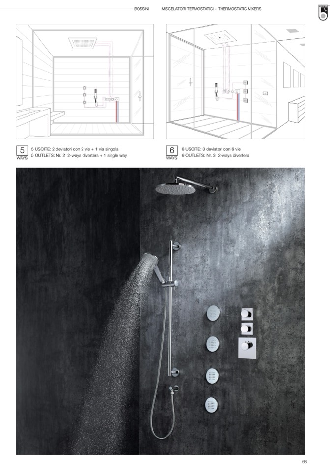 5 OUTLETS: Nr. 2 2-ways diverters + 1 single way