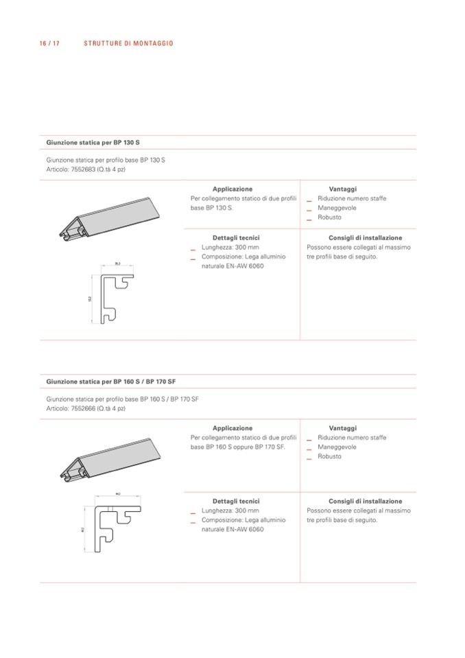 nzione statica per profilo base BP 160 S / BP 170 SF