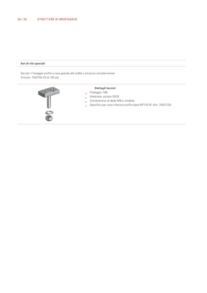Set per il fissaggio profilo a cava grande alle staffe o strutture complementari