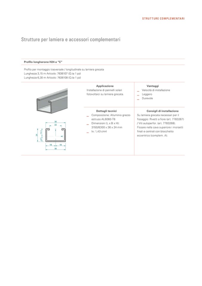 Profilo longherone H24 a “C”