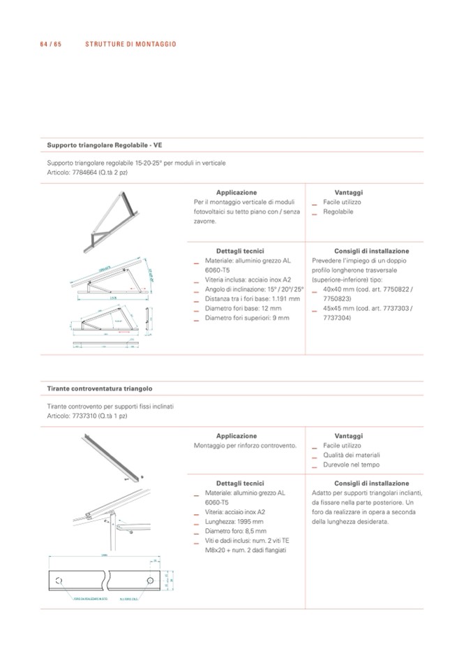 Supporto triangolare regolabile 15-20-25° per moduli in verticale