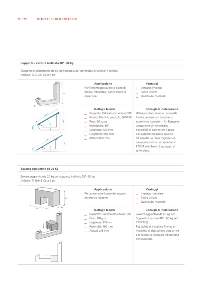 Supporto in calcestruzzo da 60 kg inclinato a 30° per moduli orizzontali / verticali