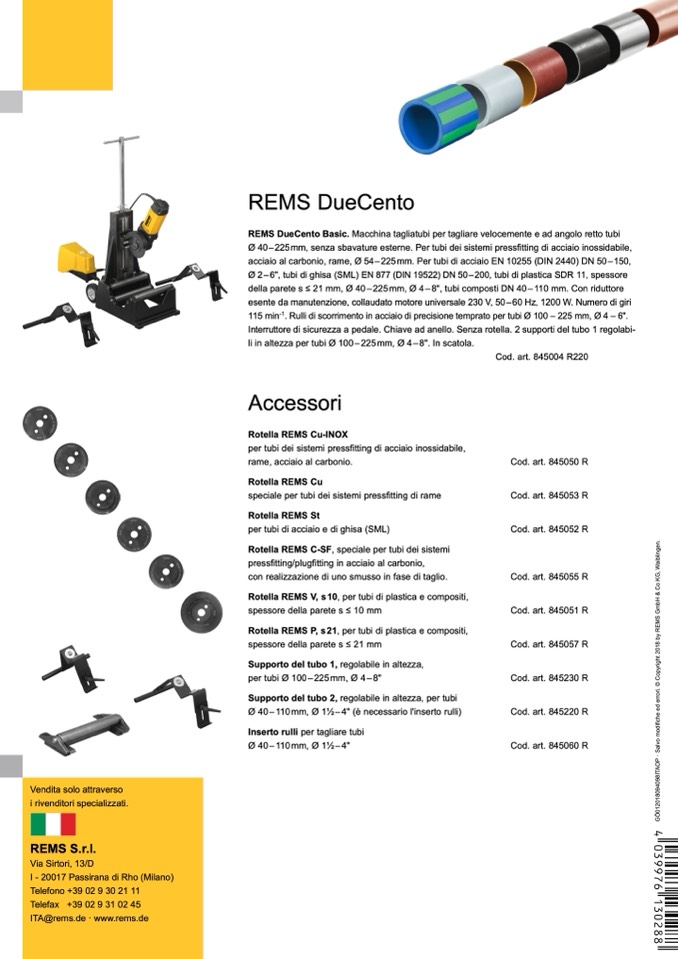 REMS DueCento Basic. Macchina tagliatubi per tagliare velocemente e ad angolo retto tubi