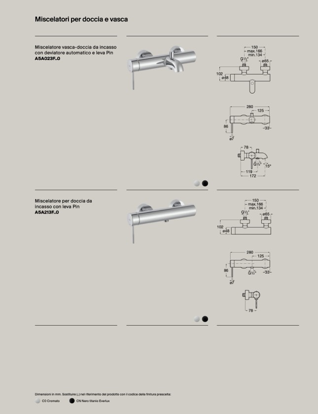 Dimensioni in mm. Sostituire (..) nel riferimento del prodotto con il codice della finitura prescelta: