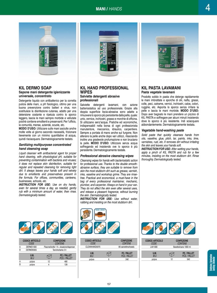 pulizia delle mani, a pH