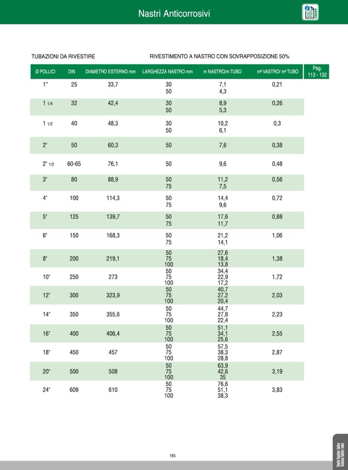 DIAMETRO ESTERNO mm LARGHEZZA NASTRO mm