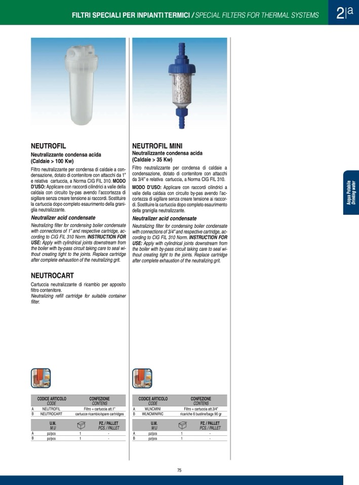 Filtro neutralizzante per condensa di caldaie a