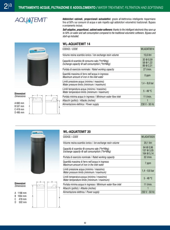 Self-adaptive, proportional, cabinet water softeners: thanks to the intelligent electronic they save up