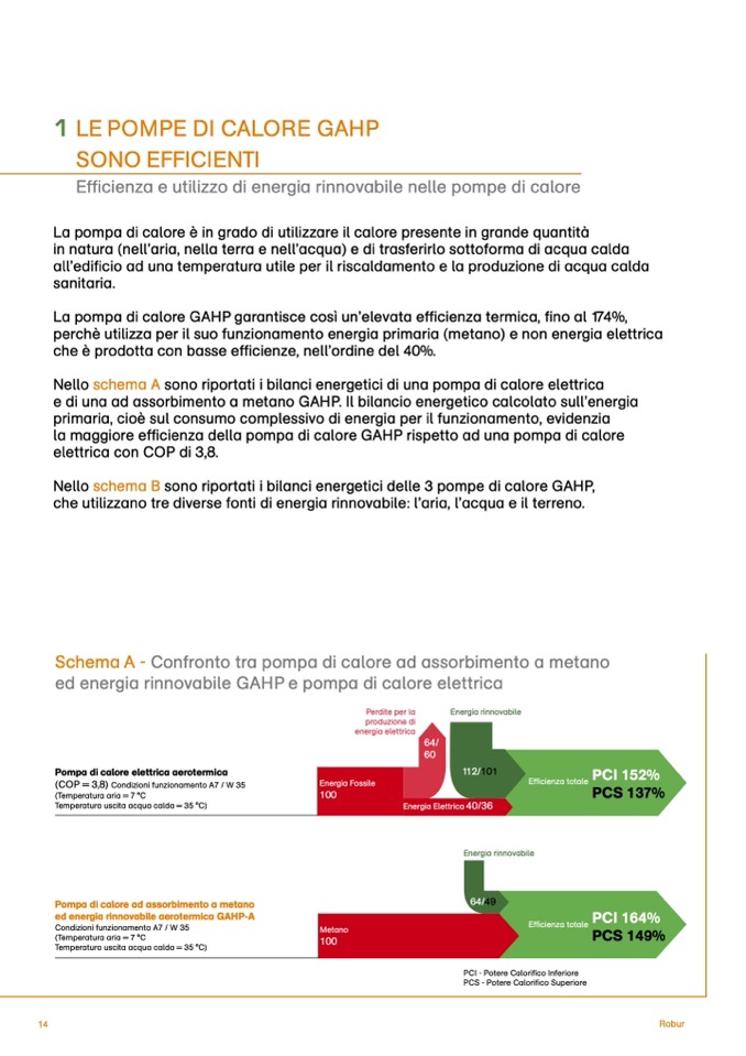 La pompa di calore GAHP garantisce così un’elevata efficienza termica, fino al 174%,