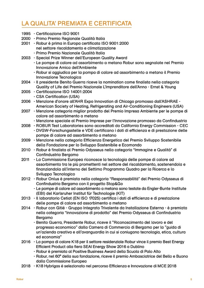 Robur si aggiudica per la pompa di calore ad assorbimento a metano il Premio