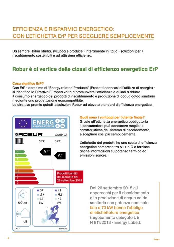 La direttiva premia quindi le soluzioni Robur ad elevato standard d’efficienza energetica.