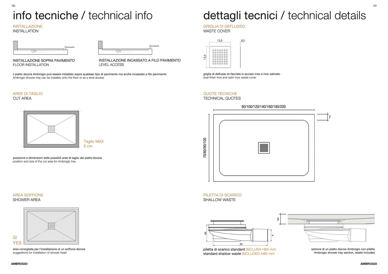sezione di un piatto doccia Ambrogio con piletta