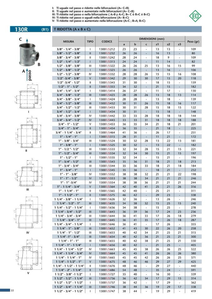 Ti uguale nel passo e ridotte nelle biforcazioni (A= C>B)